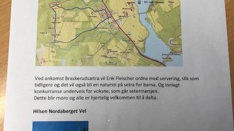 Setermarsj til Braskerudsetra søndag 5. juli kl.13.00 Igjen klart for setermarsj. Vi satser på fint være og god stemning. Oppmøte, se bilde. Veien blir merket opp til 505 Vestsidevegen og opp til møteplas... Publisert 18.06.2020 kl. 14:55
