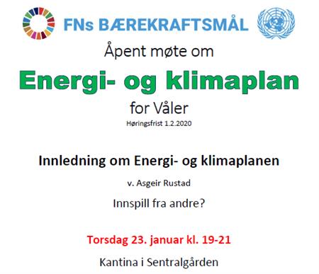 Åpent møte om Energi- og klimaplan for VålerTorsdag 23. januar i Kantina Sentralgåden, kl. 19 - 21. Husk også høringsfrist 01.02.2020. Publisert av Finn David Nilsen Publisert 21.01.2020 08:01 Alle interesserte er velkommen! Hele invitasjonen finner du her. (PDF, 685 kB) Høringsutkast Energi- og klimaplan (PDF, 3 MB)