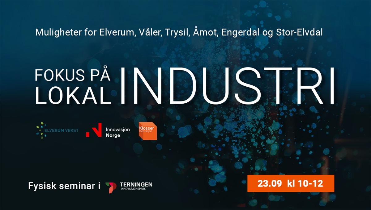 Kl 10-12: Fysisk seminar «Tett på lokal industri» i den nyåpnete Terningen Innovasjonspark, Elverum fra kl 10-12 (lunsj fra kl 11.30)