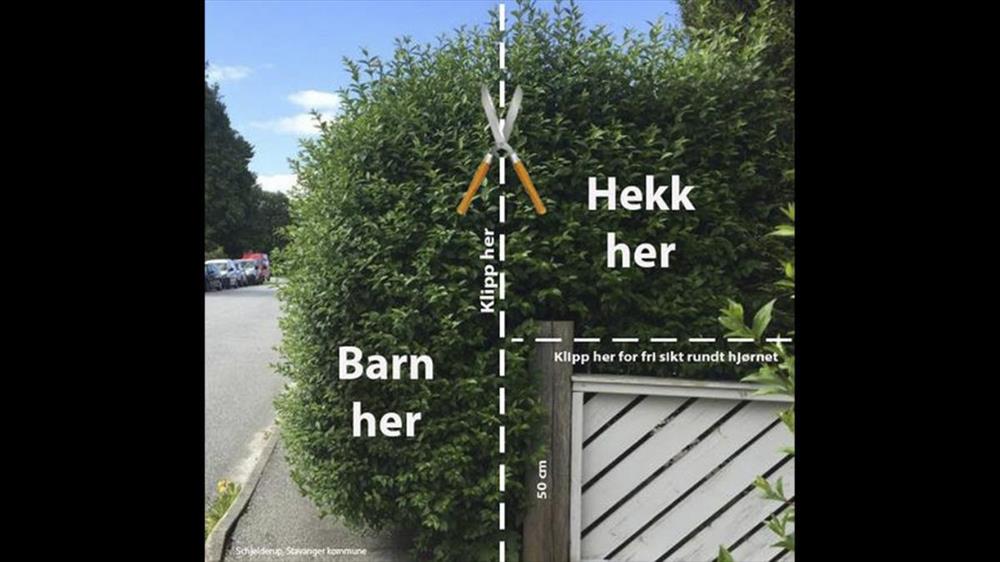 Statens vegvesen oppfordrer derfor alle hage- og grunneiere som bor langs trafikkerte veier til å klippe hekker, busker og greiner som kan utgjøre en fare for trafikantene.