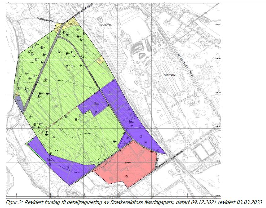 Detaljregulering av Braskereidfoss Næringspark, Våler kommune. Nytt offentlig ettersyn.Frist for å komme med merknader er 28.04.23. Publisert av Finn David Nilsen Publisert 06.03.2023 13:52 Bakgrunn og informasjon om nytt planforslag (PDF, 559 kB) Merknader Spørsmål og eventuelle merknader til revidert planforslag sendes: Plan1 AS Gardermoen, Balder Allé 2, 2060 Gardermoen, E-post: iof@p1.no. Kopi sendes til: Våler kommune via e-post til postmottak@vaaler-he.kommune.no. Frist for å komme med merknader er 28.04.23. Planforslag med tilhørende dokumenter kan sees på arealplaner.no Alle sakens dokumenter Detaljregulering av Braskereidfoss Næringspark, Våler kommune Detaljregulering av Braskereidfoss Næringspark, Våler kommune Tittel Publisert Type 20230306_Detaljregulering Braskereidfoss Næringspark_Nytt offentlig ettersyn 06.03.2023 Filtype: pdf. Klikk for å laste ned 20230306_Detaljregulering Braskereidfoss Næringspark_Nytt offentlig ettersyn.pdf 20211209_rev 20230303_Braskereidfoss næringspark_Risiko og sårbarhetsanalyse 06.03.2023 Filtype: pdf. Klikk for å laste ned 20211209_rev 20230303_Braskereidfoss næringspark_Risiko og sårbarhetsanalyse.pdf 20211209_rev 20230303_Braskereidfoss næringspark_planbeskrivelse_inkl. beskrivelse av endringer etter offentlig ettersyn 06.03.2023 Filtype: pdf. Klikk for å laste ned 20211209_rev 20230303_Braskereidfoss næringspark_planbeskrivelse_inkl. beskrivelse av endringer etter offentlig ettersyn.pdf 20211209_rev 20230303_Braskereidfoss næringspark_NOTAT_vurdering av områdestabilitet 06.03.2023 Filtype: pdf. Klikk for å laste ned 20211209_rev 20230303_Braskereidfoss næringspark_NOTAT_vurdering av områdestabilitet.pdf 20211209_rev 20230303_Braskereidfoss næringspark_Utvidet planområde_1-3000 i A1 06.03.2023 Filtype: pdf. Klikk for å laste ned 20211209_rev 20230303_Braskereidfoss næringspark_Utvidet planområde_1-3000 i A1.pdf 20211209_rev 20230303_Braskereidfoss næringspark_Sjekkliste naturmangfoldloven 06.03.2023 Filtype: pdf. Klikk for å laste ned 20211209_rev 20230303_Braskereidfoss næringspark_Sjekkliste naturmangfoldloven.pdf 20211209_rev 20230303_Braskereidfoss næringspark_reguleringsbestemmelser 06.03.2023 Filtype: pdf. Klikk for å laste ned 20211209_rev 20230303_Braskereidfoss næringspark_reguleringsbestemmelser.pdf