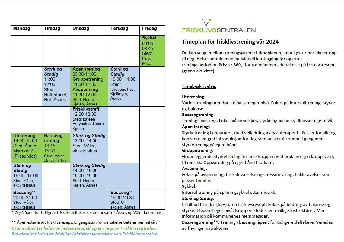 Alle som er bosatt i Åsnes og Våler kommune kan benytte seg av Frisklivssentralens tilbud. Man kan delta på FRISKLIVSTRENING i tre måneder og/eller et av våre KURS eller andre FRISKLIVSAKTIVITETER.