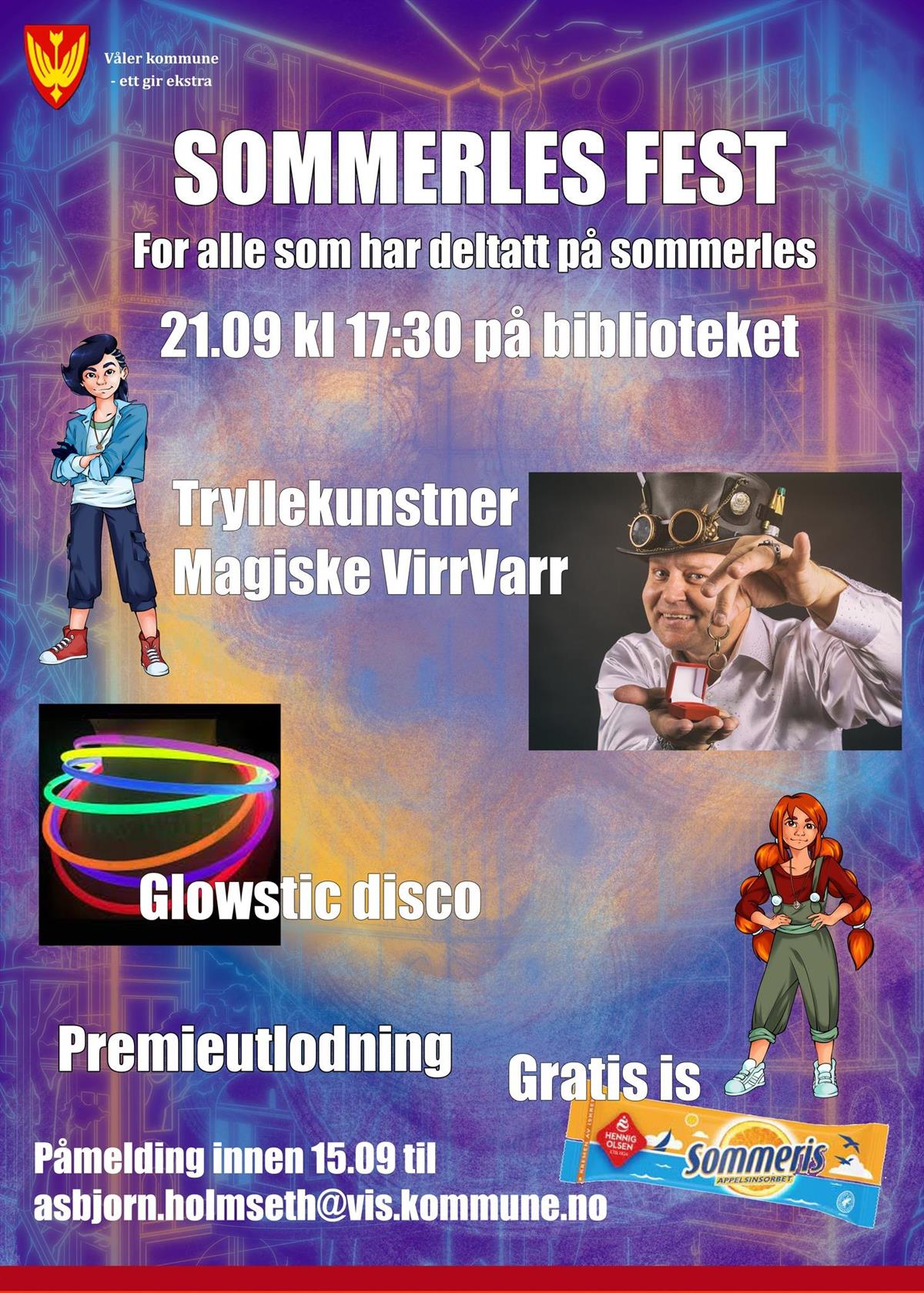 Vi får besøk av tryllekunstner "Magiske VirrVarr", det blir glowsitck disco, is og fine premier. Meld dere på biblioteket eller på e-post til: asbjorn.holmseth@vis.kommune.no slik at vi vet hvor mange som kommer.