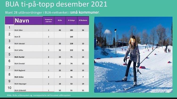 BUA Våler topper «ti-på-topp» lista i desember med mest utlån i små kommune Vi er så stolte av jobben som legges inn på BUA i Våler, gratulerer med topp plassering! Publisert 10.01.2022 kl. 13:40
