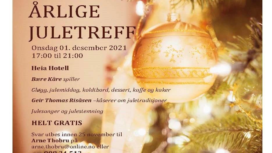 GRATIS JULEBORD til medlemmene av pensjonistforeningen, onsdag 01. desember kl 17:00 Du er hjertelig velkommen til en festaften som er helt gratis, da Statsforvalteren har bevilget penger til formålet. Publisert 03.11.2021 kl. 08:46