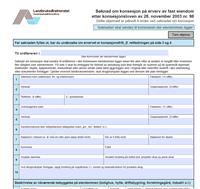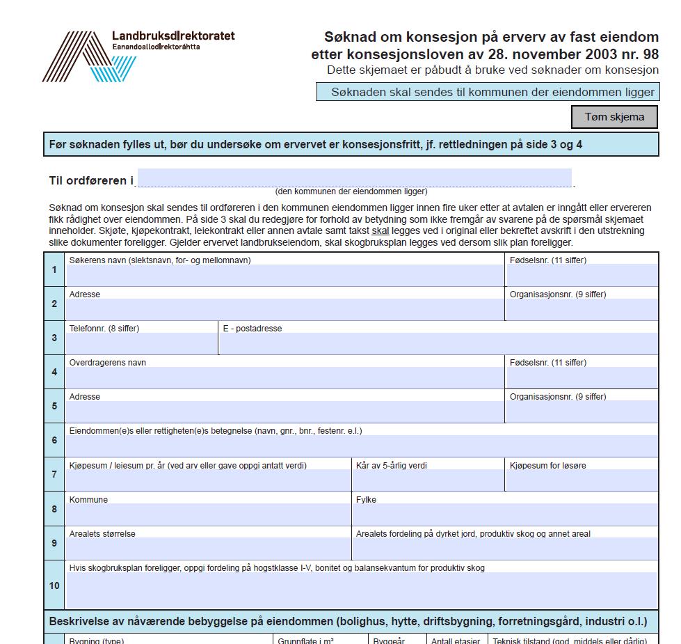 Dersom ervervet er konsesjonspliktig må det søkes på følgende skjema: