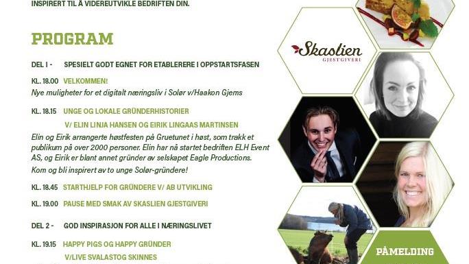 Næringskveld i Solør For kommende, nye og veletablerte bedrifter!Onsdag 13. februar kl 18.00 til ca 20.00 på Skaslien GjestgiveriLes mer... (PDF, 735 kB)