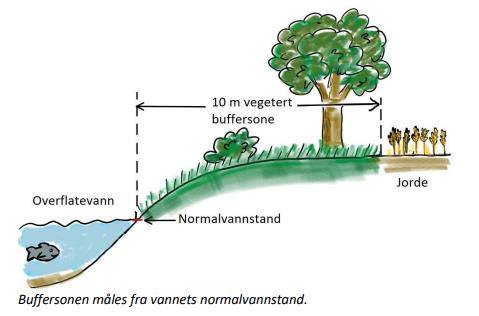 Påminnelse - avstandskrav til vann og/eller krav til buffersone ved bruk av plantevernmidler!Vi går nå inn i en tid med bruk av mye plantevernmidler -og minner derfor om viktigheten av å sette seg godt inn i regelverk og brukerveiledning for de aktuelle preparater. Les etikettene nøye! Plantevernmidler kan aldri brukes nærmere overflatevann enn 3 meter. For enkelte midler er det større avstandskrav. Dersom man ved avdriftsreduserende tiltak kan sprøyte nærmere må det stå på etikett. Mattilsynet har utarbeidet en egen veileder: Tiltak som gir avdriftsreduksjon ved bruk av plantevernmidler Vegeterte buffersoner: Noen plantevernmidler har krav om vegetert buffersone - 10 meter - det vil da aldri være mulig å sprøyte nærmere vann enn inntil denne. Krav om buffersone bortfaller ved enkelte tilfeller, les mer i Mattilsynets veileder: Vegeterte buffersoner mot plantevernmidler i overflatevann Mattilsynet fører tilsyn med bruk av plantevernmidler nær vann, les mer Kilde: Mattilsynet Publisert av Eli Rusten Publisert 07.06.2021 09:26 Sist endret 07.06.2021 09:35